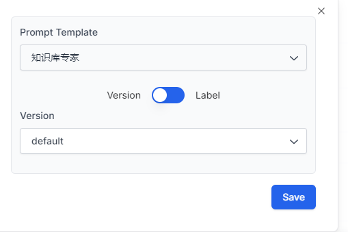 选择完毕提示词后,会发现下方多出了一个“Version”选项,之所以有这个选项,是因为PromptLayer提供了“版本迭代”功能,你所做的每一次修改,将会被记录下来,以方便回溯调试。此选项默认为default,代表着最新版本的提示词模板。