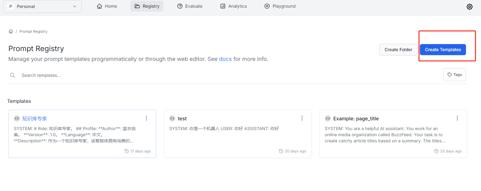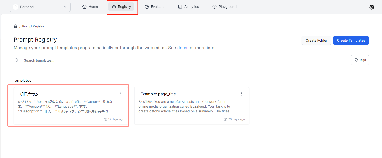 账号创建完毕后,我们跳转到”Registry“菜单中,开始提示词模板创建流程。