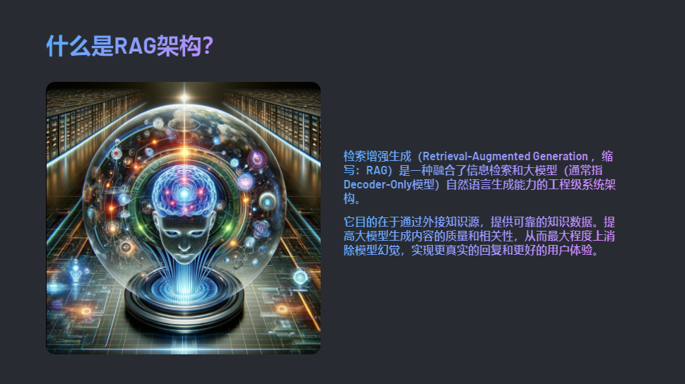 RAG 概括起来就是知识检索+内容生成。这么说太抽象,可以理解为大模型的开卷考试,既然是开卷考试,那么谁带的书和资料内容更全,谁翻书翻的更快更准,谁开卷考试的结果就往往更好。